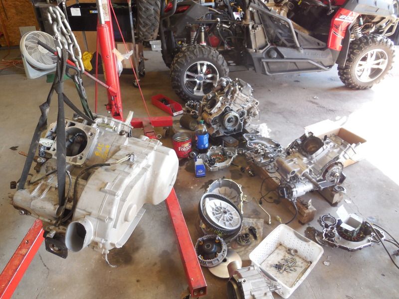 A close family friend had bought a 2015 ZForce 800 in Black from us shortly after I took him for a ride in our unit. At 720 miles, he had a hard time starting it, and when it did run, it couldn't get out of its shadow. Brought it in, and he too had dropped the rear cylinder. 60psi of compression in the rear, 150psi in the front. Air box was full of blow by, but his intake was spotless. With his, we have NO idea why his went down. His rear connecting rod had gone as well. CFMoto sent us a motor for his.